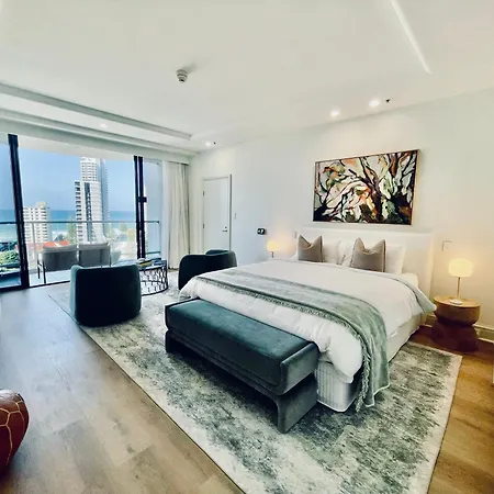 O Boutique Ocean View Studio With King Bed & Spa Gold Coast está localizado em Gold Coast a 6 minutos a pé de Gold Coast Business Advisory Centre e dispõe de banheira quente. Neste apartamento, os hóspedes podem relaxar na piscina ao ar livre ou visitar Cascade Gardens, que fica a 600 metros de distância.